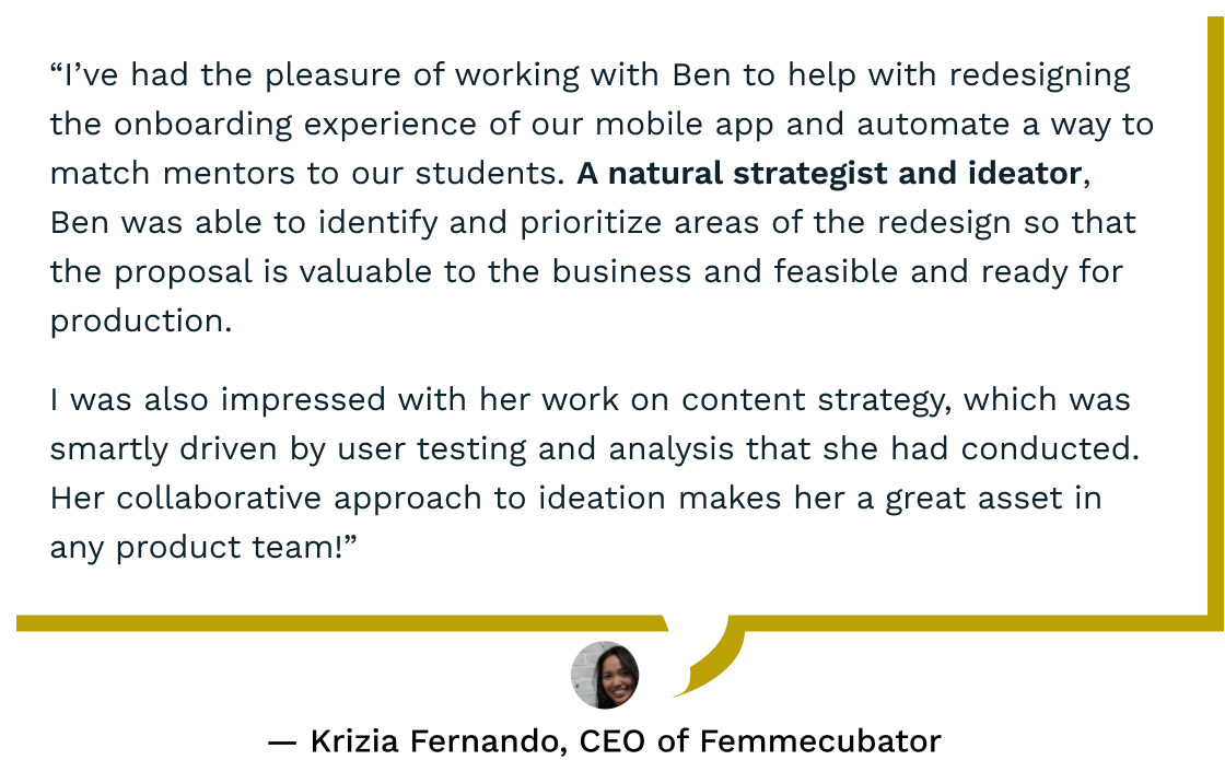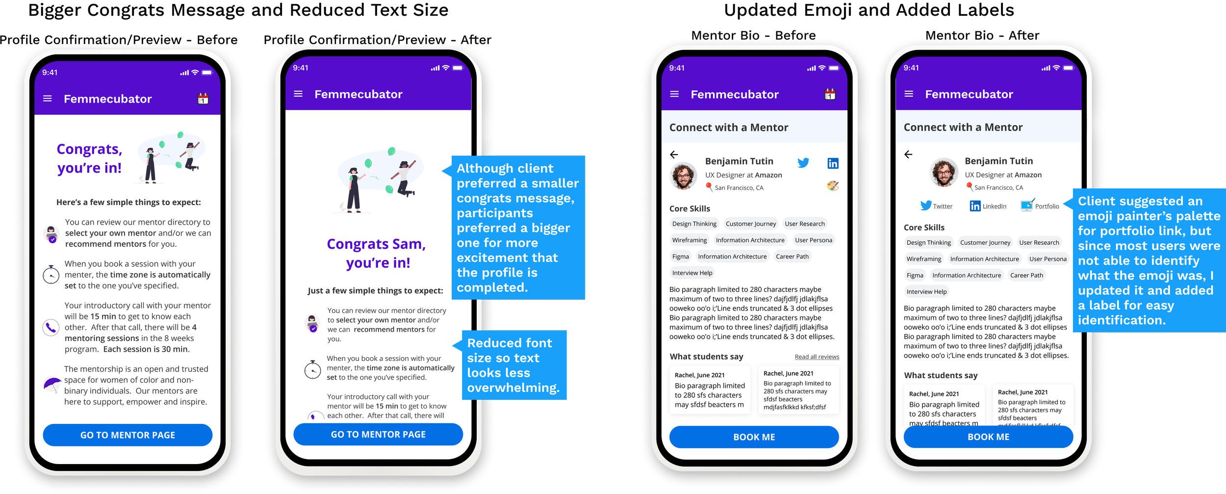 Femmecubator loved the results and is working with a developer to implement the designs. Read the testimonial: